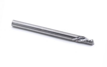 Геометрия фрезы обеспечивает отвод стружки вверх, что обеспечит меньший нагрев фрезы (по сравнению с фрезами с отводом стружки вниз) и чистую нижнюю поверхность заготовки, если фрезеровать материал насквозь. Две режущие кромки фрезы позволят обрабатывать материалы быстрее, по сравнению с однозаходными фрезами, но это и увеличивает нагрев фрезы.